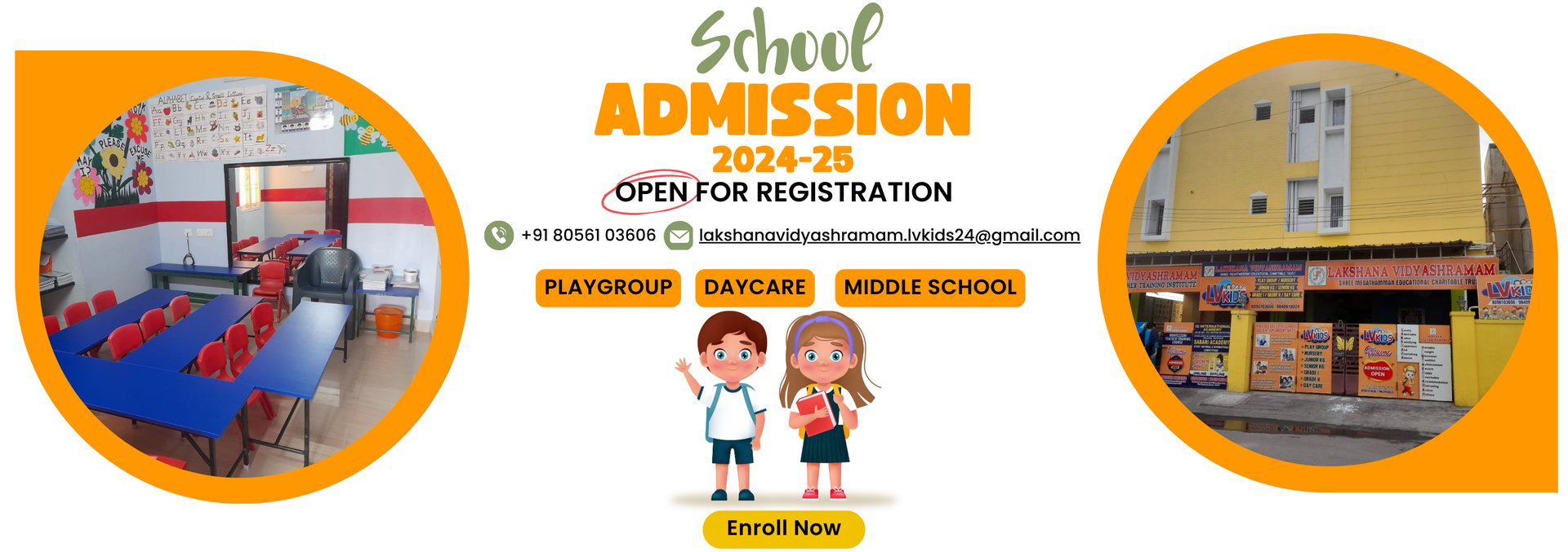 Lakshana vidyashramam began with the foundation of little kingdom " LV KIDS" by our founder Sriram Kumar Merkavan .It was an exclusive preschool for children 2 years to 7 years of age and was started with a strength of 40 student in 2012. Lakshana vidyashramam preschool blossomed by adopting the activity method of teaching in which the students participate rigorously and bring out efficient Learning and developed into a primary school. "SHREE MEGATHAMMAN EDUCATIONAL AND CHAIRITABLE TRUST" controls the school with it, active trustees.